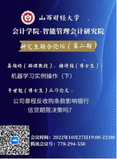 2022年10月27日晚7点-10点,由伟德源自英国始于1946伟德bv1946与智能管理会计研究院联合举办的研究生论坛(暨博硕士生学术沙龙活动)第二期以线上会议的形式举行。参会人数达140余人。