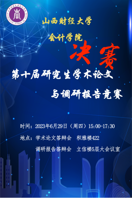 2023年4-6月,伟德bv1946举办了第十届研究生学术论文和调研报告大赛。大赛共收到参赛作品100份,通过查重后的科研成果共74份,其中包括学术论文42份,调研报告32份。本次竞赛分为两个阶段:第一阶段(初赛)由外部专家匿名评审,主要邀请中国人民大学、中央财经大学、西南财经大学、天津财经大学、北京工商大学等知名大学的资深理论与实务专家分别评分,按照得分平均值进行排名;学术论文及调研报告各取前15名为本届大赛获奖科研成果。第二阶段决赛于6月29日15点-17点30分举行,在外部专家匿名评审的基础上,选取学术论文与调研报告各自排名前六位的选手进行现场答辩,决赛分为学术论文和调研报告两个分赛场,各由5名专家构成答辩委员会。最后,对初赛与决赛成绩赋予合理权重,得出最终成绩,并评选出一、二、三等奖获得者。