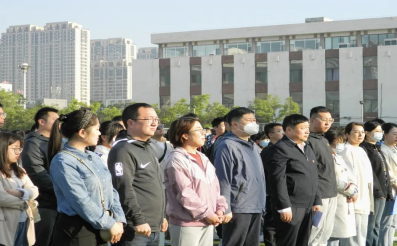 5月22日上午,伟德bv1946在坞城校区体育运动场举行升国旗仪式。学院全体班子成员、全体辅导员、学生代表参加活动,学院党委书记任海生讲主题教育党课,党委副书记赵骞主持仪式。